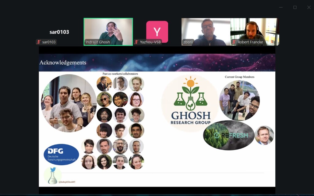 „Hlavním cílem mé prezentace bylo představit kolegům z LIKAT práci naší skupiny v MEL v oblasti fotoredoxní katalýzy – zejména naše snahy řešit současné výzvy v metalo-fotoredoxních katalytických systémech. Jedná se o důležité výzkumné oblasti pro vývoj ekonomičtějších a udržitelnějších syntetických metodik s reálným praktickým uplatněním v průmyslové chemii, farmacii nebo agrochemii,“ řekl Ghosh, který ocenil nejen kvalitu přednášek, ale i následné odborné diskuze.
